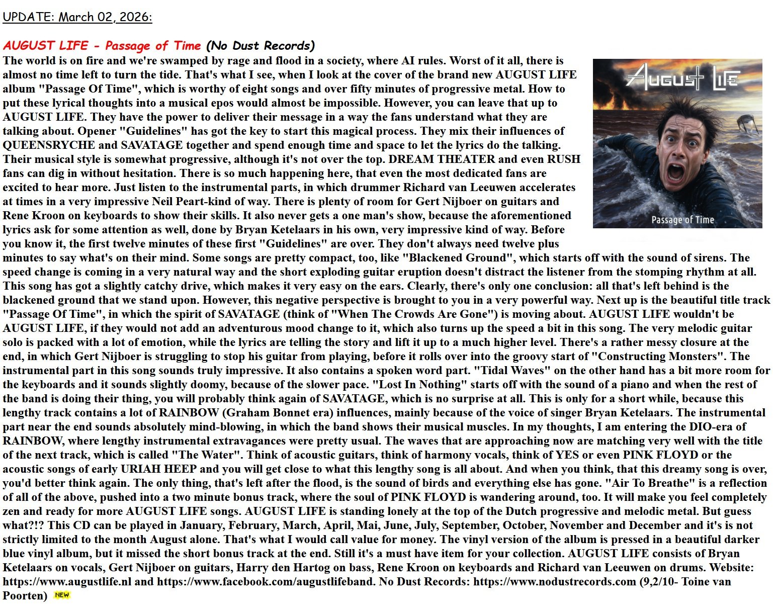 release PASSAGE OF TIME.